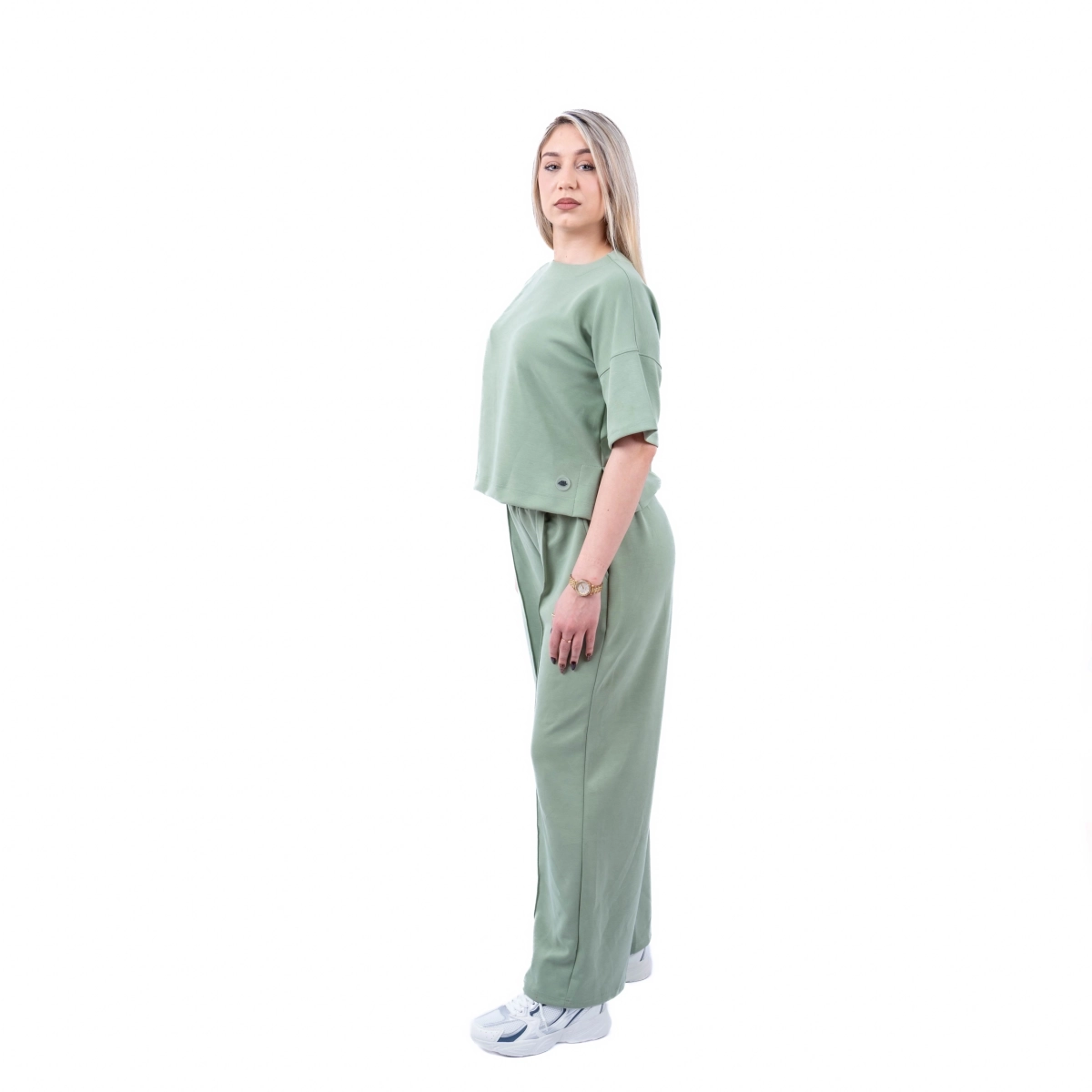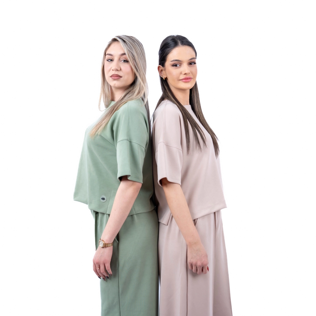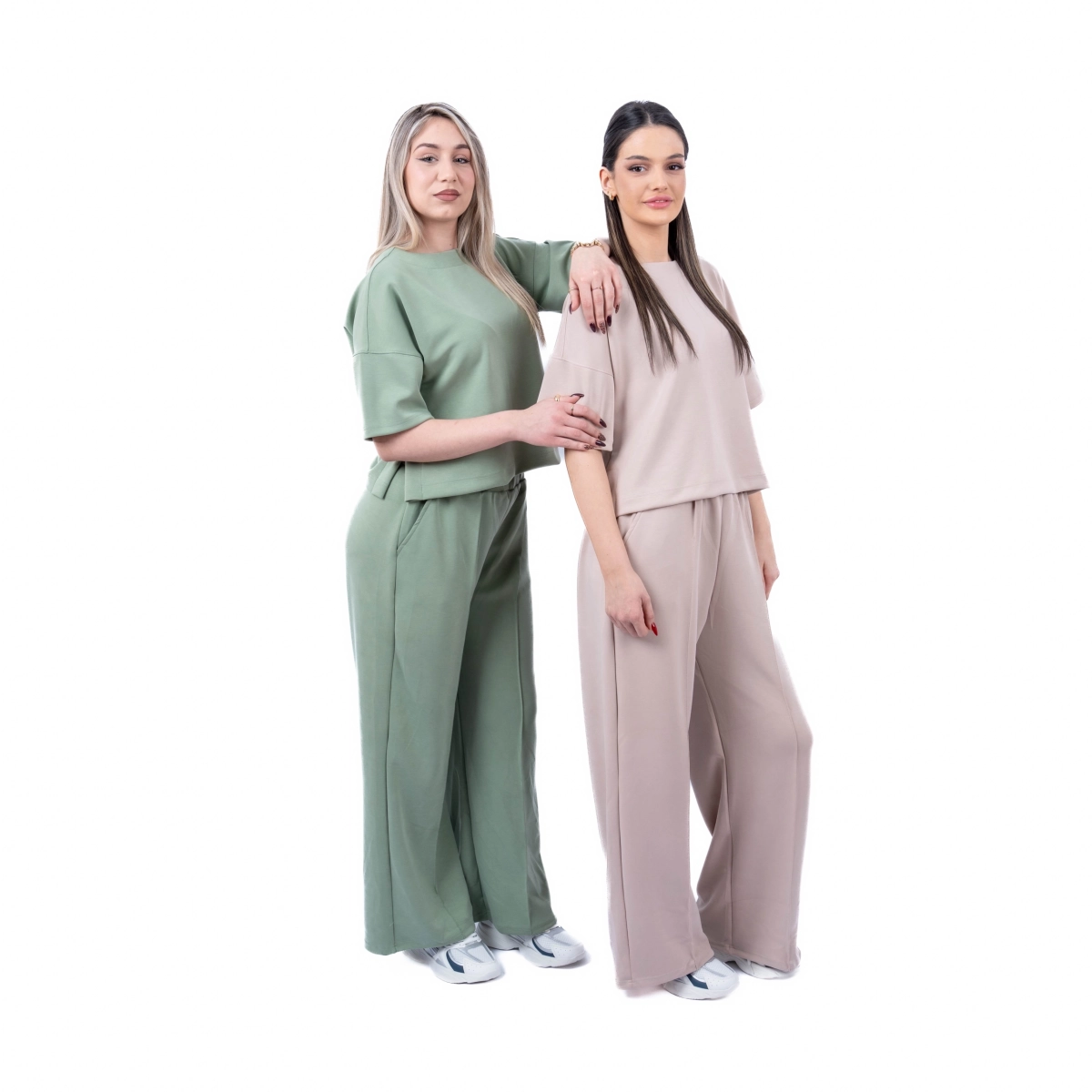 Minimalizam koji radi za tebe. Ovaj ženski komplet donosi opušten kroj i čist dizajn koji lako prelazi iz kućne varijante u urbani dnevni stil.